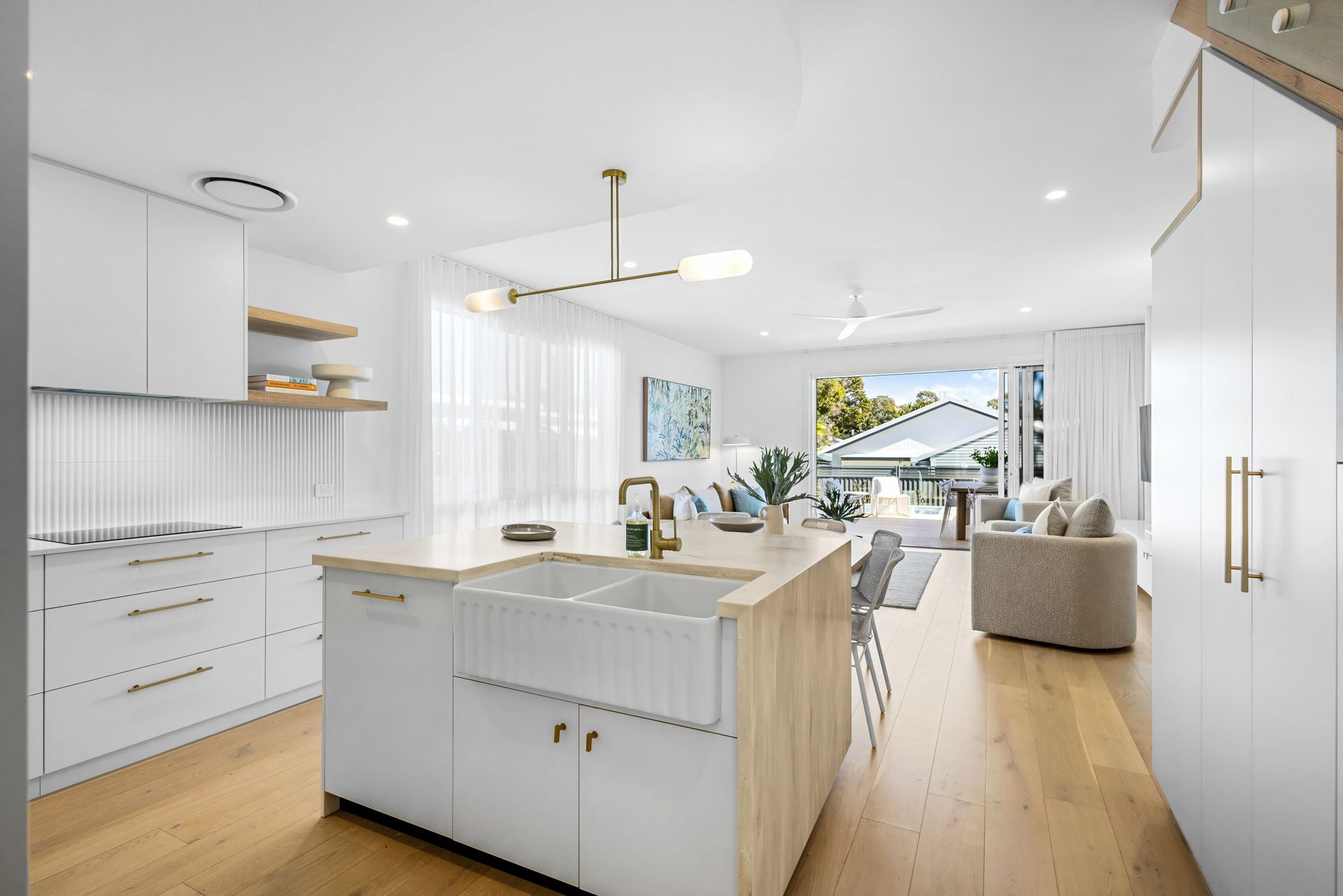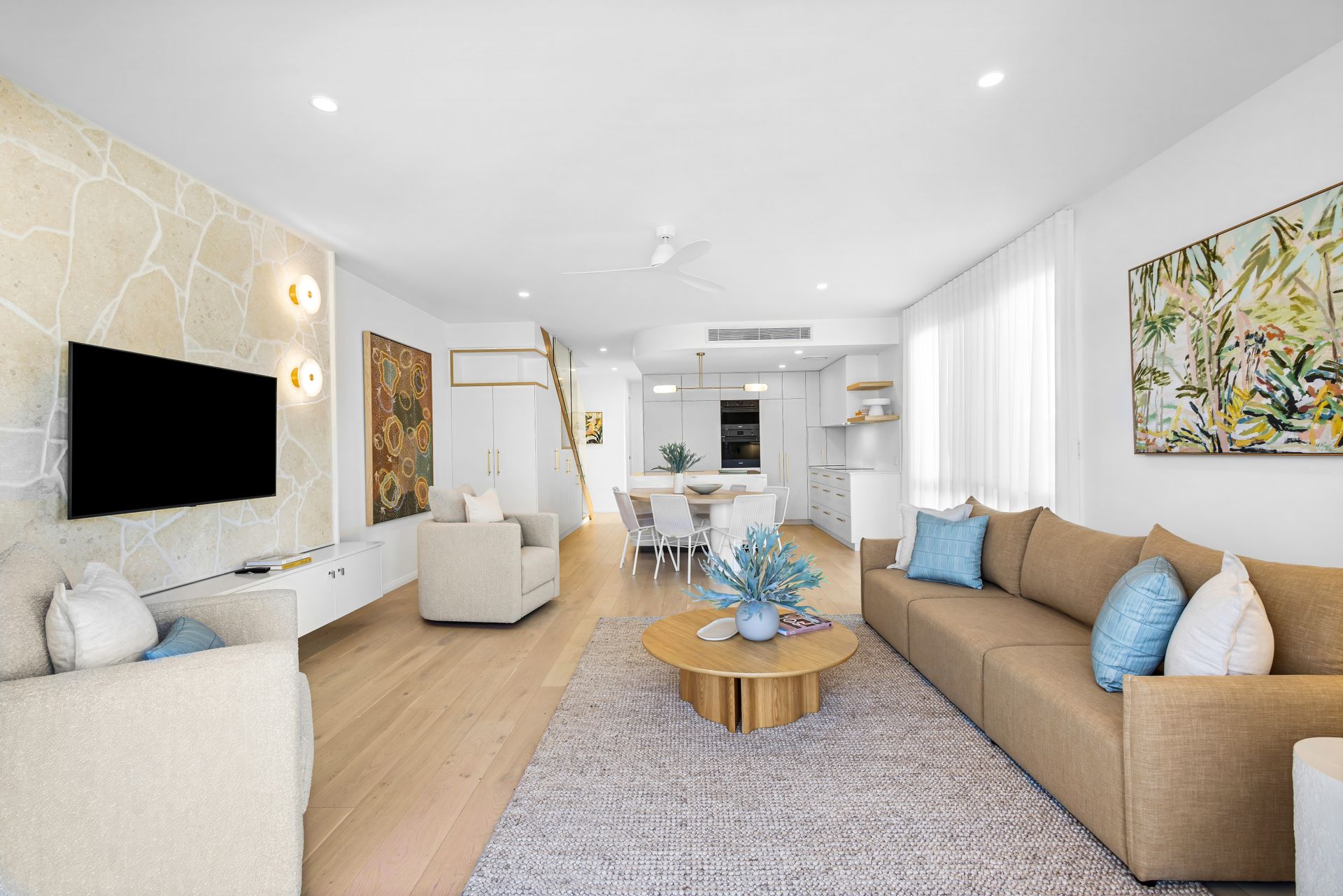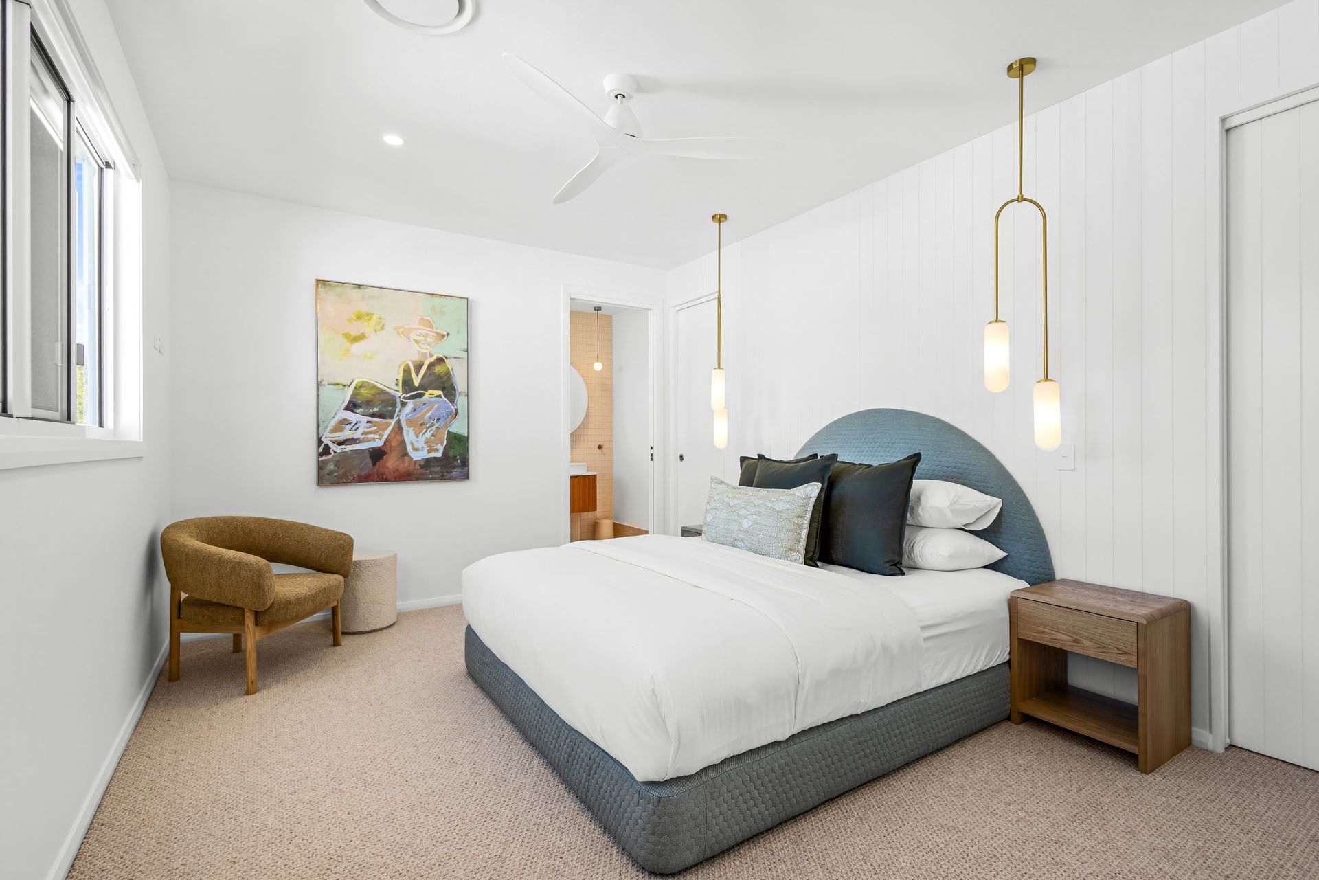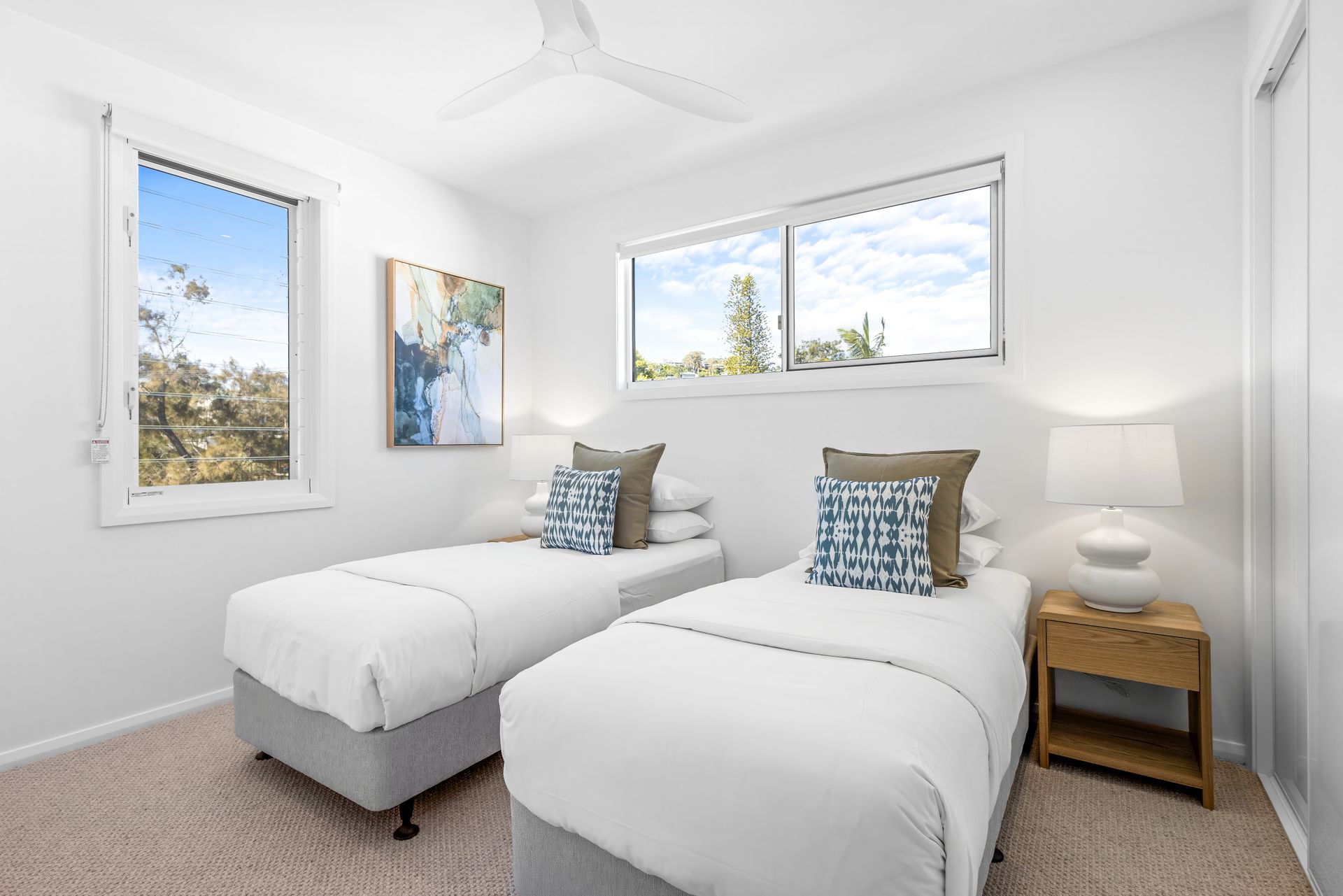 This brand-new stylish Coolum duplex townhouse offers a luxurious stay for up to six guests. The property boasts three spacious bedrooms, including a magnificent master bedroom with an ensuite and a walk-in robe. On the ground floor, you'll find a stunning kitchen equipped with high-quality European appliances, perfect for preparing delicious meals. The open-plan dining and living area seamlessly extends to a sunny rear deck and a private plunge pool, and there is ducted air-con throughout the property.