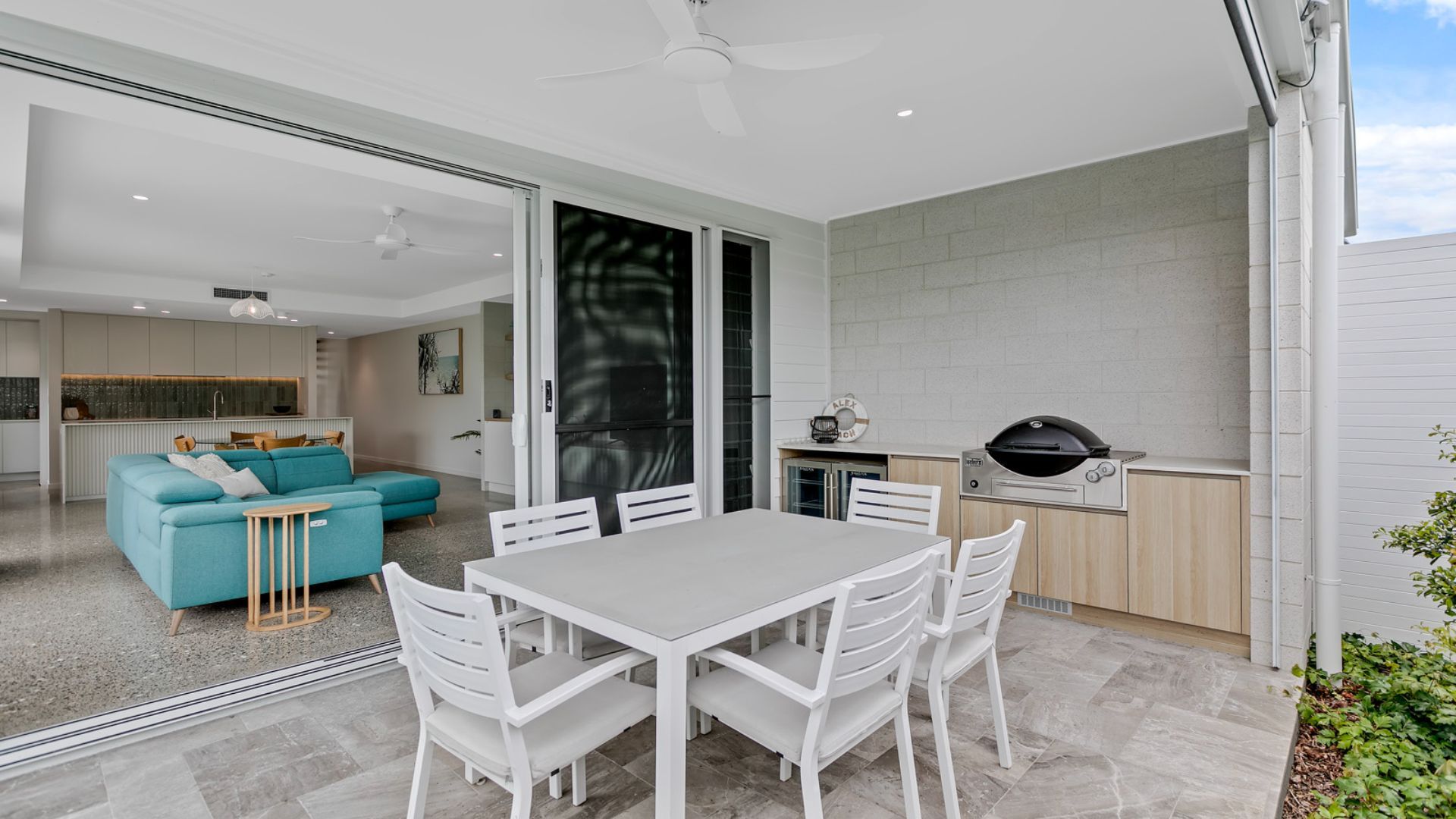 There are two living areas, and a premium kitchen with high-end appliances, and a walk-in pantry. The patio is importantly north facing with a BBQ which is built-in alongside a drinks fridge - all overlooking your private plunge pool. The separate laundry features a washing machine. The interior has been treated with care and includes cool polished concrete flooring on the ground level, timber flooring and plush carpets on the level above. There is ducted air-conditioning throughout and ceiling fans for those warm summer days. Caesarstone benches feature across the bathrooms while over in the kitchen there are Miele appliances including integrated dishwasher, a large 800mm induction cooktop and butler's pantry.