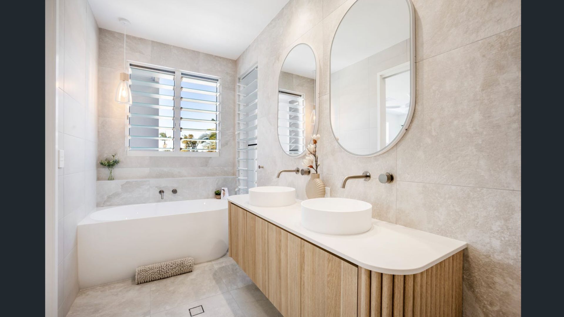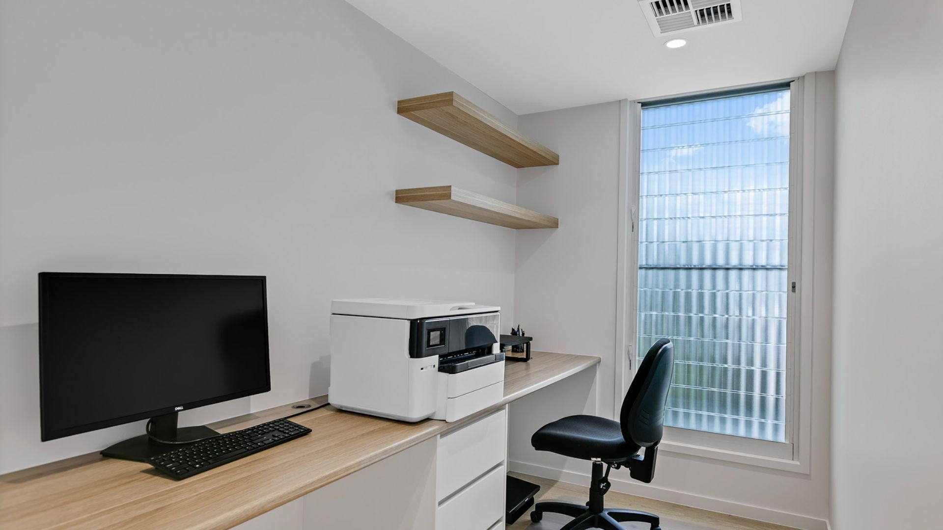 The property is set across two levels with an ease of access floor plan to provide space for all guests to stretch out and relax. Three bedrooms are on the upper level featuring 1 x KB, 1 x QB, and 2 x King Single beds. The bathrooms offer a palette of neutral tones with a bath, vanity, toilet and walk-in shower in the KB ensuite bathroom, while the guest bathroom has a walk-in shower, vanity and toilet. No expense has been spared with superb modern touches throughout. There is a separate toilet powder room on the ground level. A private office is also set up for work-from-home professionals or guests willing to check in to the office on holiday.